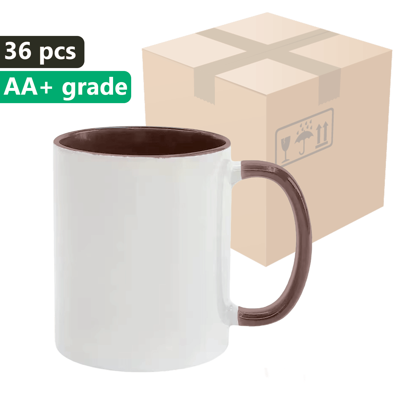 KARTON 36 Stück UNISUB Sublimationsbecher SM-056 330 ml weiß mit brauner Innenseite und Griff Klasse AA+