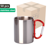 CARTON 50 pcs. OUTDOOR metallic mug 300ml Stainless Steel UNISUB MM-003 red carabiner