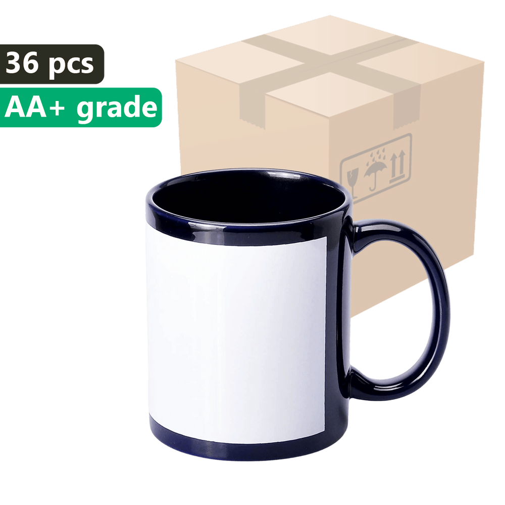 KARTON 36 szt. Kubek czarny do sublimacji UNISUB SM-047 AA+ z białym okienkiem 330ml