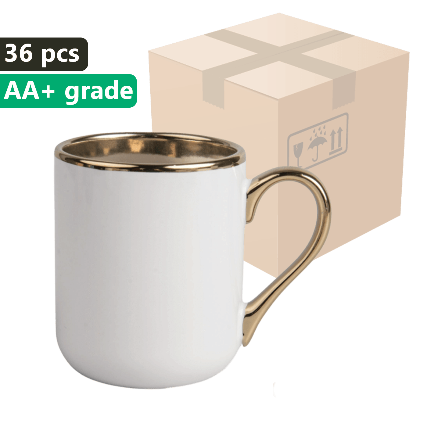 KARTON 36 sztuk Kubek do sublimacji UNISUB SM-060 330 ml biały ze złotym obrzeżem i uszkiem klasa AA+
