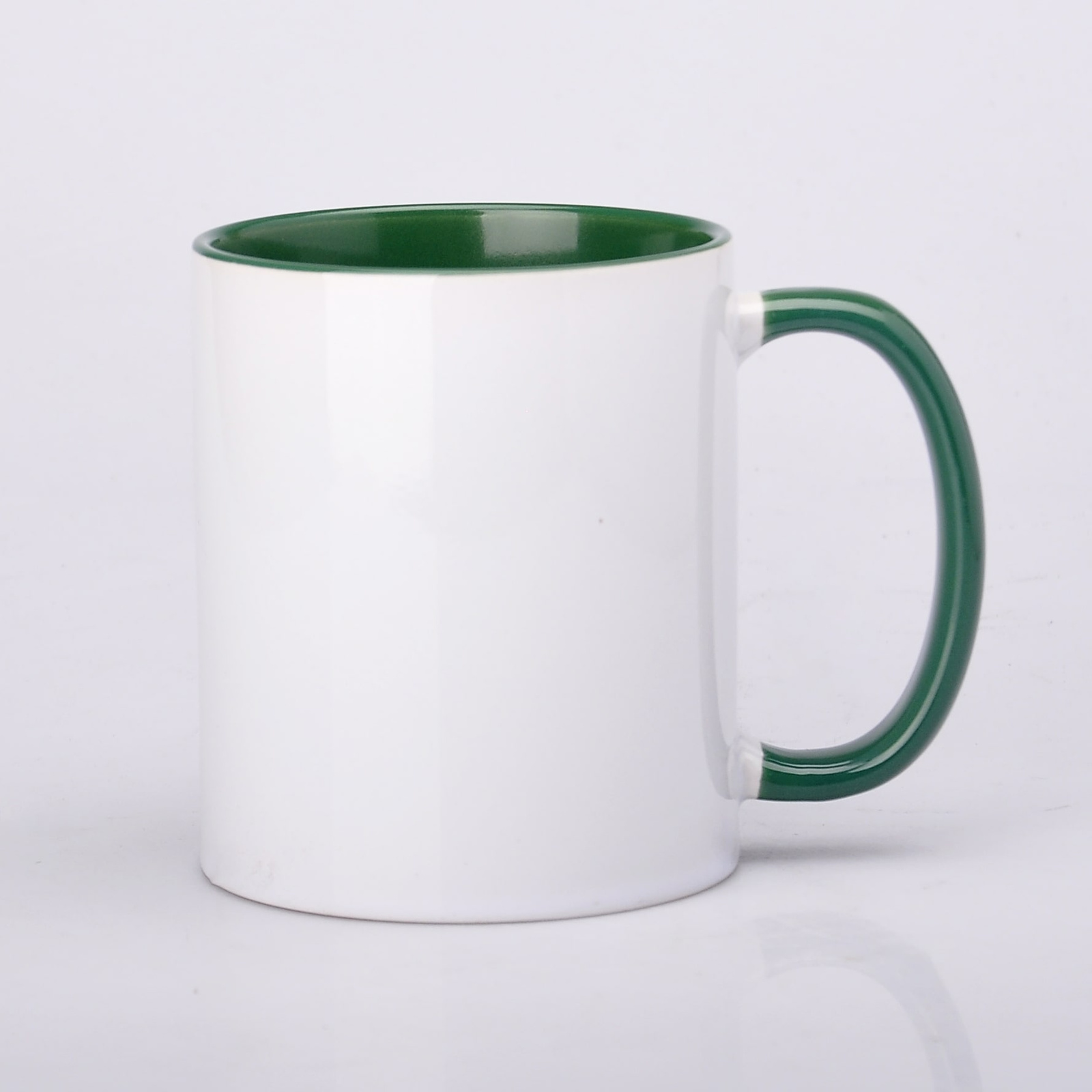 ☕ Kubek do sublimacji 330 ml UNISUB SM-009 – biały z ciemnozielonym wnętrzem